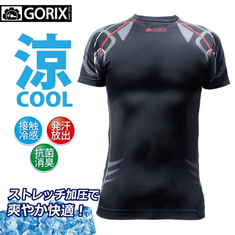 【あす楽】GORIX ゴリックス 冷感インナーシャツ 半袖 メンズ 夏 加圧シャツ スポーツ 自転車 Tシャツ M/L 速乾/適正 着圧 G-COOL